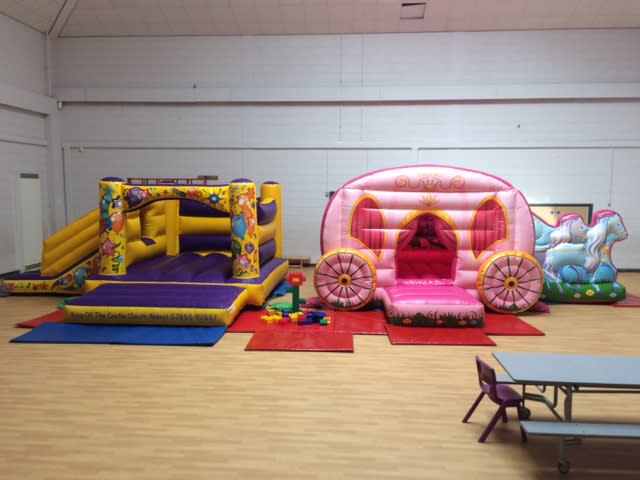 - Princess Carriage Bouncy Castle with Slide: Let your little ones embark on a magical journey with our enchanting princess carriage bouncy castle. Complete with a slide, this lovely themed bouncy castle is perfect for imaginative play and endless bouncing fun. 👸